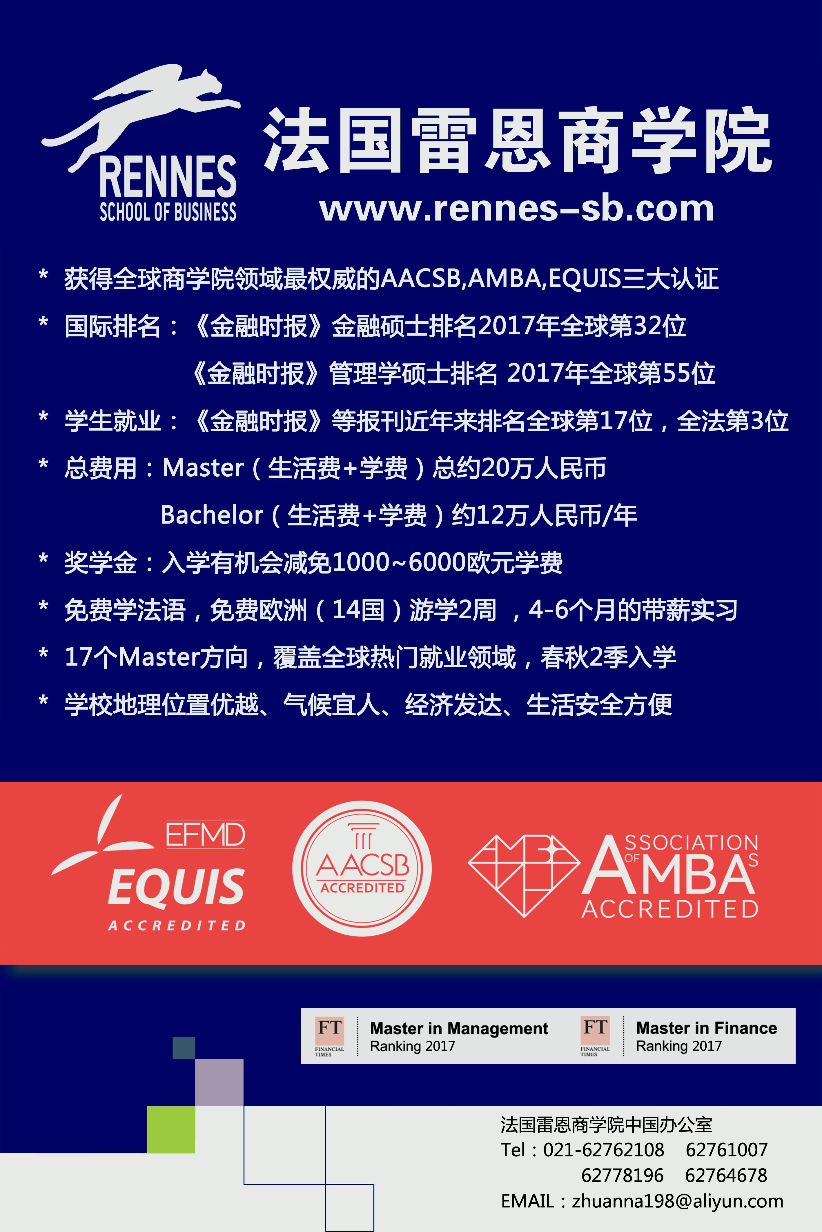 雷恩商学院(又称雷恩高等商学院)是其中极少数以英语授课为特色并可颁发博士学位的精英商学院。学院自1990年建校以来,坚持“全球化”发展战略,取得了卓越的成绩,成为法国精英商学院中排名上升最快的学院: