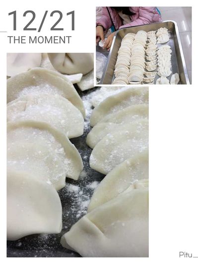 冬至的前一天,天气有点凉,饺子冒着热气,大家的心里都暖洋洋的。