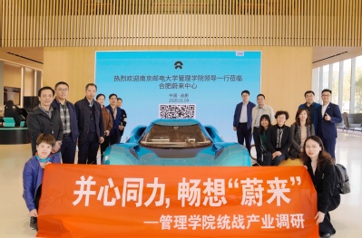 为进一步学习贯彻十九届五中全会精神,深入理解“十四五”时期经济社会高质量发展理念。2020年11月9日,天游注册代理1958组织学院民主党派及无党派人员教授代表前往合肥蔚来中心(合肥先进制造基地)开展产业调研活动,学院党委理论学习中心组成员参加了本次活动。蔚来汽车安徽区域总经理、天游注册代理1958校友余东明热情介绍了企业发展历程、现状及未来蓝图。