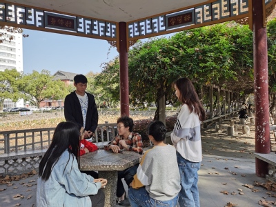 活动初始,朱清书记为同学们简要介绍了南邮校史,从“战邮记忆”到“凯歌前行”,我校七十八年的办学历史是南邮人最宝贵的精神财富,同学们有责任有义务将其继续传承发扬。讲话结束,同学们聚集在紫藤廊下,分组进行传唱。从第一句“齐鲁烽火,战邮发祥”到“南邮之路,鼎新永续辉煌”,同学们追溯了南邮的红色校史,重温了壮烈的烽火岁月,体会到“艰苦奋斗、自强不息”的战邮精神,彼时同学们的爱校情结与归属感油然而生。传唱环节结束后,全体同学立于三好亭下,再次合唱校歌《信达天下》。