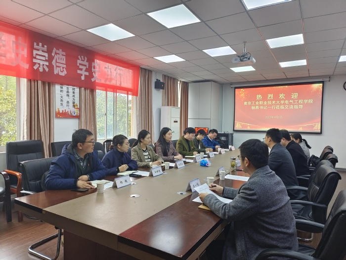 4月6日上午,南京工业职业技术大学电气工程学院书记杨燕、副书记王静等一行来天游官网交流座谈,座谈会在三牌楼校区有线楼306会议室举行,天游官网党委书记钟凯、副书记郭强等老师参加座谈交流。