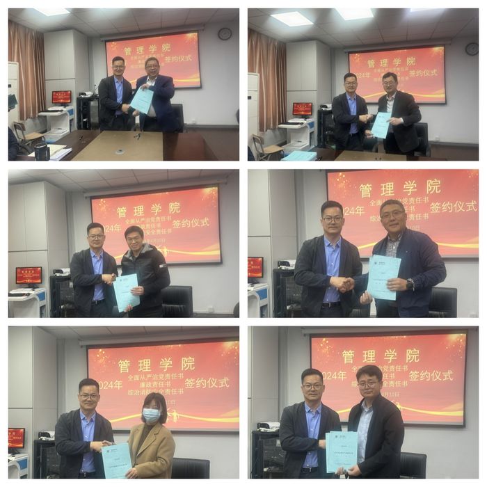 在与会人员的见证下,学院党委书记钟凯与学院领导班子成员、党支部书记、系部中心负责人签订全面从严治党责任书,院长黄卫东与非党员系部中心负责人签订廉政责任书,持续构建“横向到边、纵向到底”的责任体系。