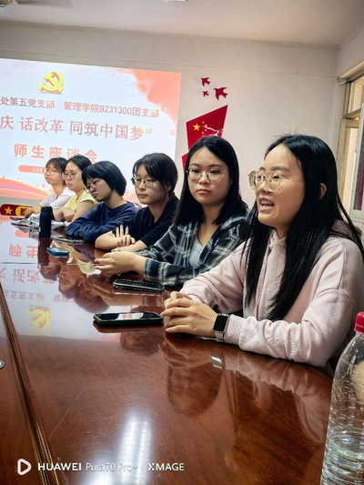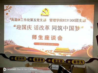 在举国同庆新中国成立75周年之际,南京邮电大学离退休处党委第五党支部与天游注册代理1958B231300团支部于今日成功举办主题为“迎国庆 话改革 同筑中国梦”专题师生座谈会。会议由离退休处党委第五党支部书记孔宪禹书记主持,离退休处党委第五党支部全体党员、B231300团支部团员代表参与活动。师生们共聚一堂,畅谈国家发展,展望未来。