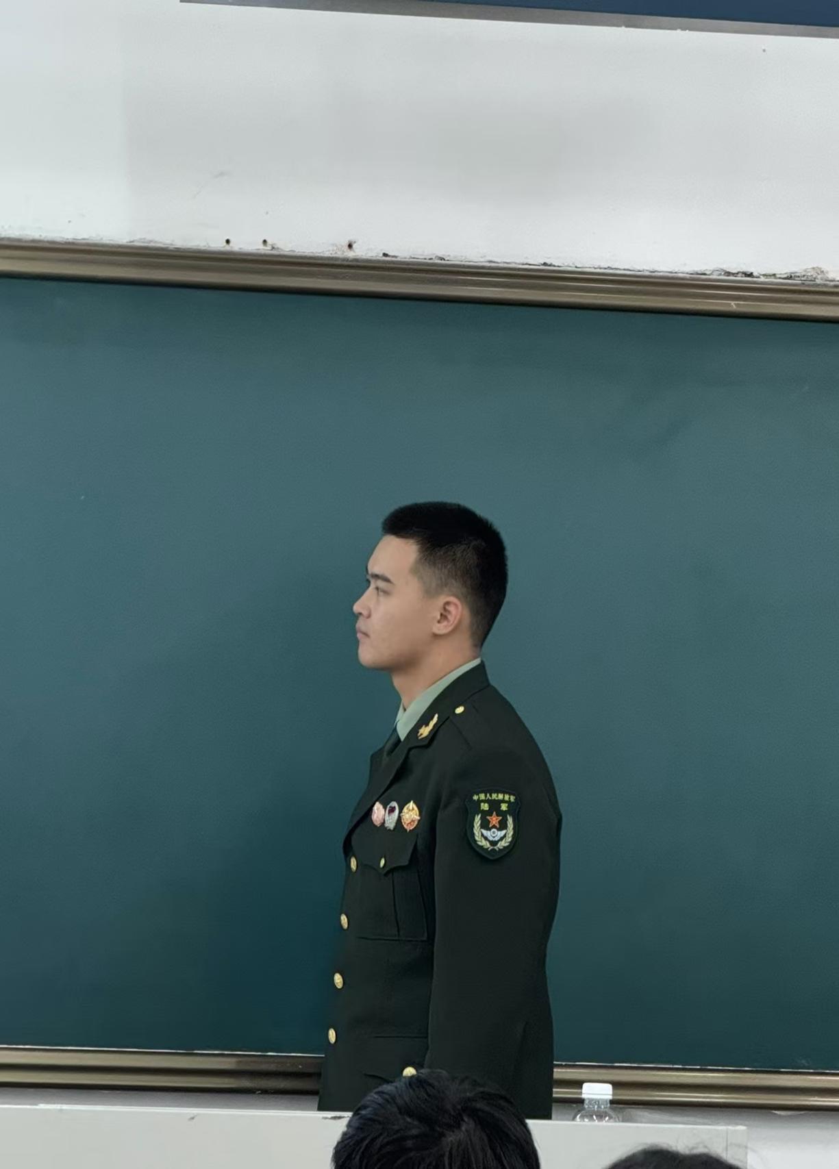 贺宇璨,共青团员,就读于南京邮电大学。2022年3月参军入伍,服役于新疆军区某部,同年11月随队前往西藏执行卫国戍边任务,近一年的艰苦戍边经历褪去了他的青涩,却始终没有改变他忠诚为国,献身国防的坚定信念。从青春校园到火热军营再到青春校园。军装不再,但兵心依旧。脱下的是军装,不褪色的是军魂。两年多的军旅生涯,让他的身心发生了脱胎换骨的变化,以往爱熬夜打游戏,白天上课打瞌睡,学习不努力的他一去不复返了;取而代之的是,上课专心听讲,作息有规律、积极向上的热血青年。