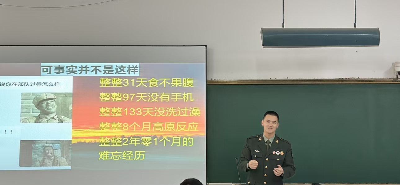 几乎每个月都会准备国防宣讲课,给同学们普及国防知识并鼓励他们参军入伍,以自己的方式继续为国防事业做出贡献,历经边境冲突,他比任何同学都更理解和平的来之不易,也更加珍惜宝贵的大学时光。部队这所大熔炉,让贺宇璨收获了终身难忘的宝贵精神财富,重返校园的他正在快速适应,阔别学校三年之久,在学习方面正在奋力追赶。他仍然保持着规律的作息和优良的作风。如今他正以饱满的精神面貌昂首走向人生新的阶段。